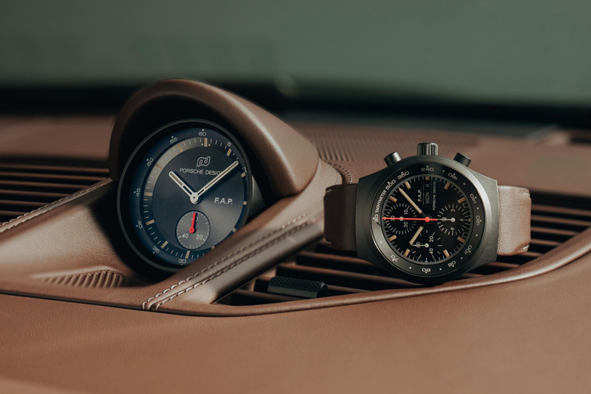 Les acquéreurs de l'un des 90 modèles de la Porsche 911 GT3 90 F.A. Porsche bénéficieront d'une montre chronographe Porsche Design également réalisée en édition exclusive. Contrairement à l'exemplaire original Chronographe 1 de 1972, cette version moderne est fabriquée en titane ultraléger, résistant et hypoallergénique, recouvert de noir. Le bracelet en titane est également revêtu de noir mais le propriétaire peut opter pour un bracelet en cuir fourni. Le numéro de série (XX/90) et la signature de F.A. Porsche sont gravés au laser sur le fond du boîter. La montre dispose d'une certification COSC, garantie d'une précision maximale. Elle est fabriquée à la main dans la manufacture horlogère de Porsche, située à Granges en Suisse.